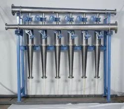 Make Low Density Cleaner or Centricleaner separates components from the liquid containin Particles by introducing feed with high velocity in inlet tangentially into cylindrical body which set up circular flow and creates a cyclone to remove Air, Dirt, Sand, Unbeaten Paper Chips and other Nor Fibrous Dense Particles from Pulp and light particles discharged from discharge Nylon Nozzle at bottom.